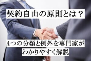 「契約は自由に決められる」と聞いたことがある方も多いと思います。これが、いわゆる契約自由の原則です。 しかし実際の契約では、自由とはいえ「どんな内容でも有効」というわけではありません。例えば、公序良俗に反する内容や法律に … 続きを読む 契約自由の原則とは?4つの分類と例外を専門家がわかりやすく解説